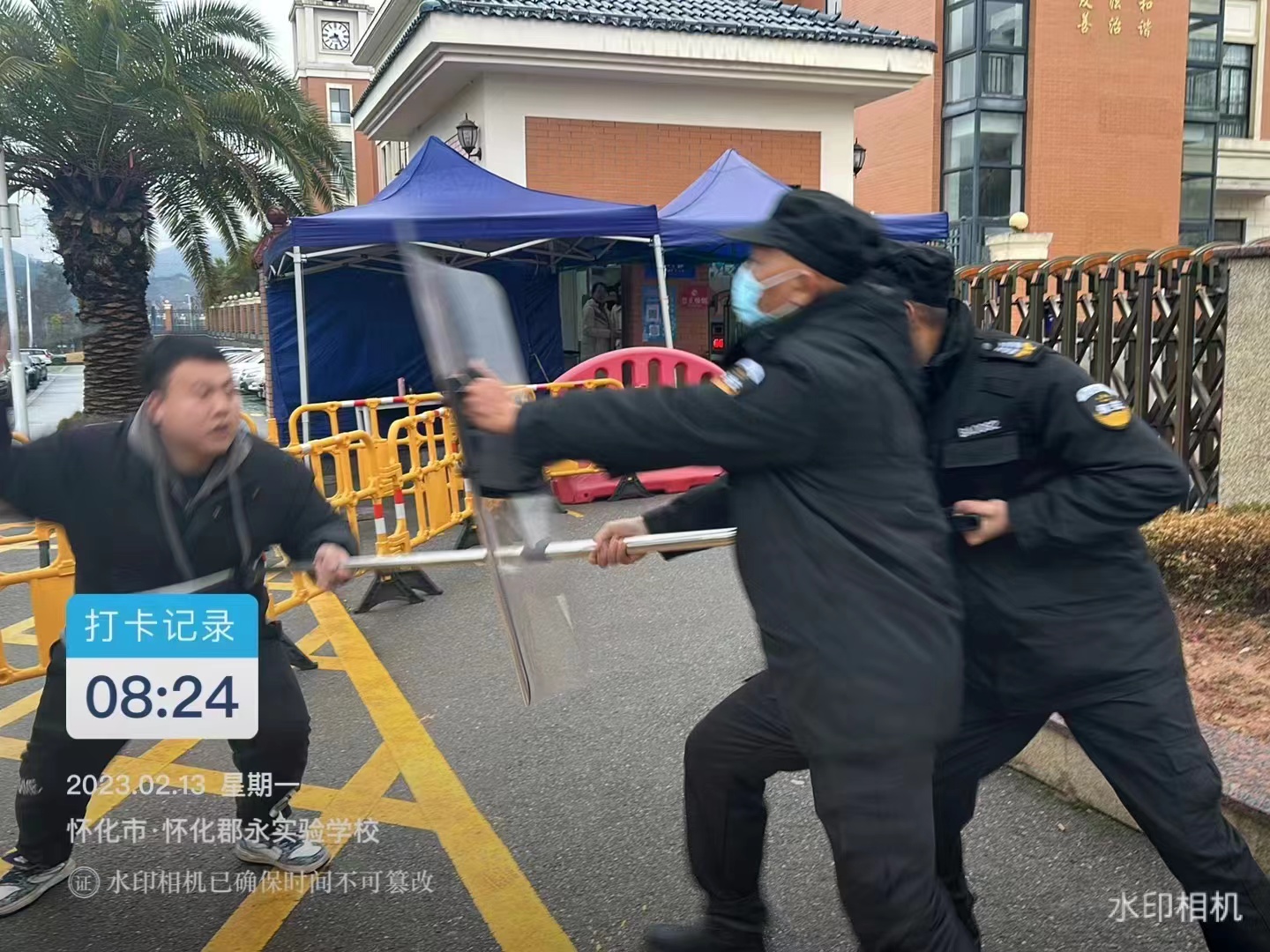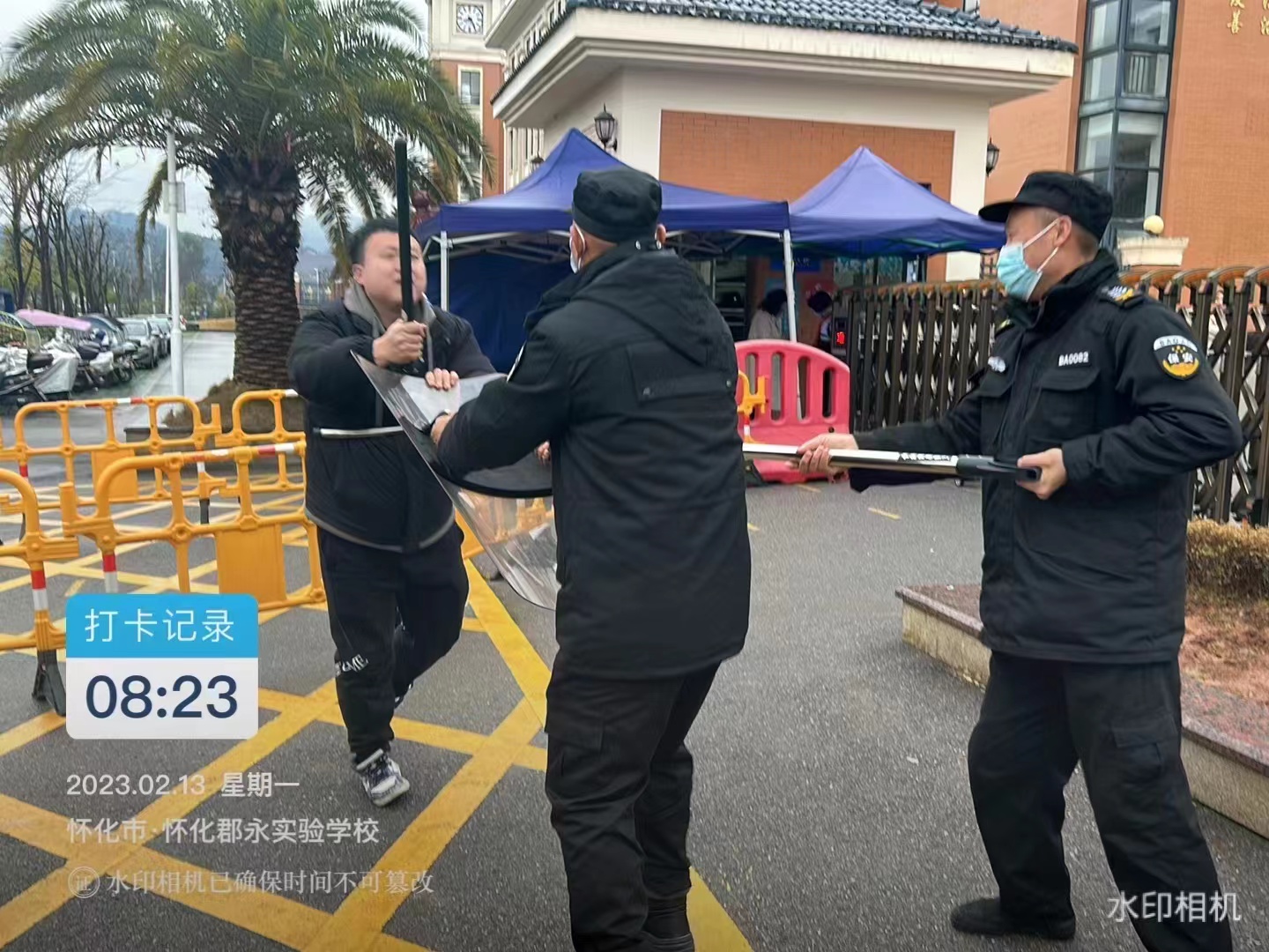 為切實強(qiáng)化校園安保工作,提升校園安保隊伍應(yīng)對突發(fā)性事件的反應(yīng)和處理能力,保障全校師生人身和財產(chǎn)的安全,2023年2月13日上午,公司領(lǐng)導(dǎo)組織郡永實驗學(xué)校全體保安進(jìn)行反恐防爆演練。