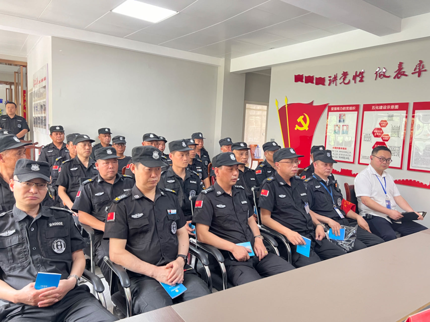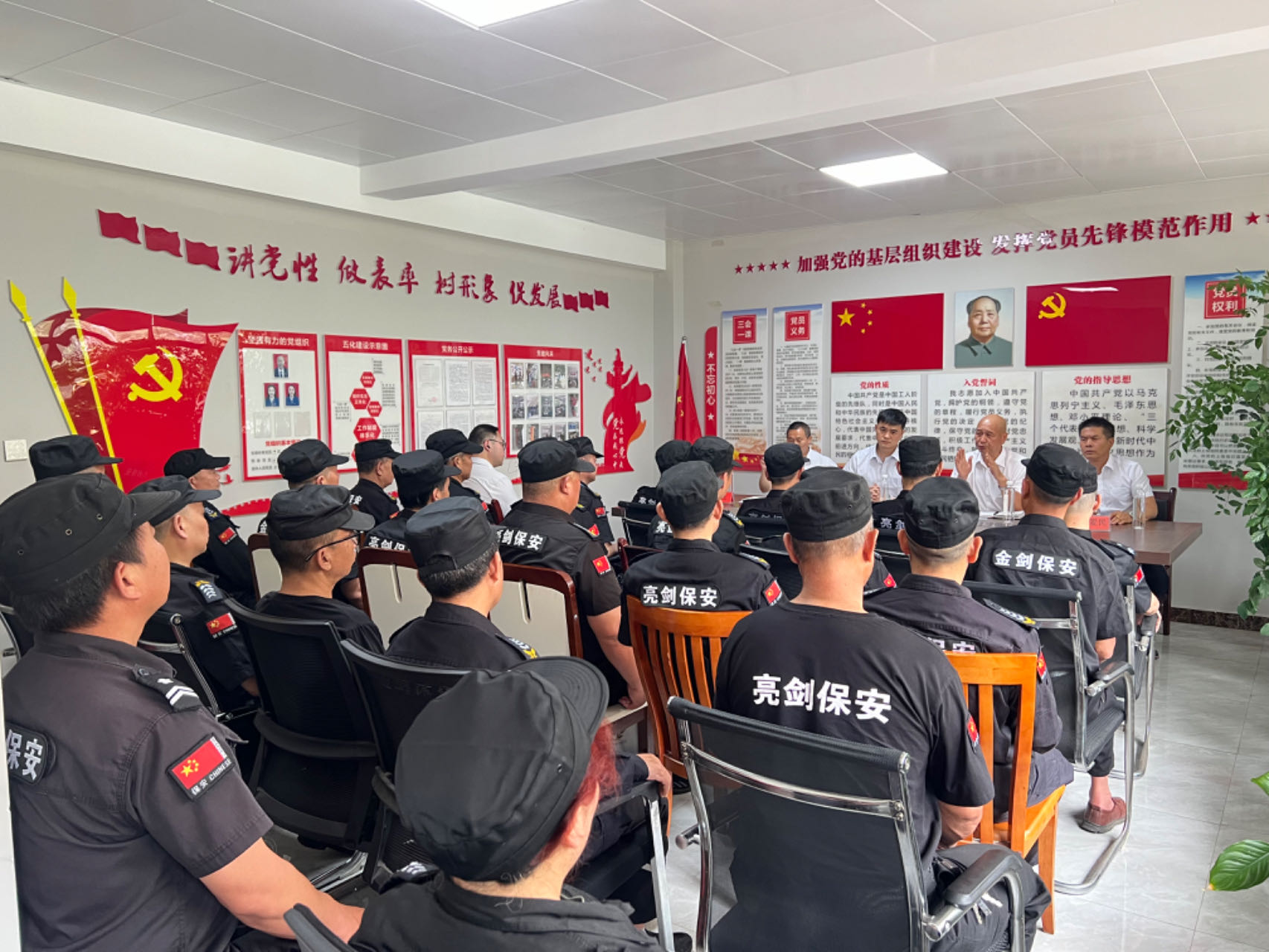 會上,金劍公司總經(jīng)理向其華首先就疫情以來公司整體情況進(jìn)行了總結(jié)。在總結(jié)中,向其華對公司各班隊工作情況予以充分肯定。認(rèn)為各班隊長能夠根據(jù)公司的統(tǒng)一安排部署,全力以赴投入疫情阻擊戰(zhàn),積極配合公安機關(guān)參與社會治安巡邏 ,熱心社會公益活動,得到了上級領(lǐng)導(dǎo)、縣市公安機關(guān)和人民群眾的一致好評。他同時指出,盡管公司隊伍主流是好的,但也還存在有的班隊隊伍管理不嚴(yán)、作風(fēng)散漫、履職不到位、甚至違紀(jì)違法等方面問題,必須引起公司領(lǐng)導(dǎo)和各班隊長高度重視。他強調(diào),在下步工作中,必須進(jìn)一步加強班子建設(shè)。公司領(lǐng)導(dǎo)和各班隊長都應(yīng)發(fā)揮排頭兵、領(lǐng)頭羊作用,以上率下,嚴(yán)格自我要求,帶頭遵規(guī)守紀(jì) ,抓實隊伍管理;必須進(jìn)一步加強隊伍管理教育,各班隊長要盡職盡責(zé),嚴(yán)格隊員日常教育管理,確保隊伍整體穩(wěn)定純潔;必須進(jìn)一步依法履職盡責(zé),公司全體人員都要立足崗位 ,依法積極擔(dān)當(dāng)作為,為客戶保平安,為公司添光彩;必須進(jìn)一步加強業(yè)務(wù)技能培訓(xùn),通過業(yè)務(wù)技能培訓(xùn),不斷提升安保綜合能力,更好履職盡責(zé)。